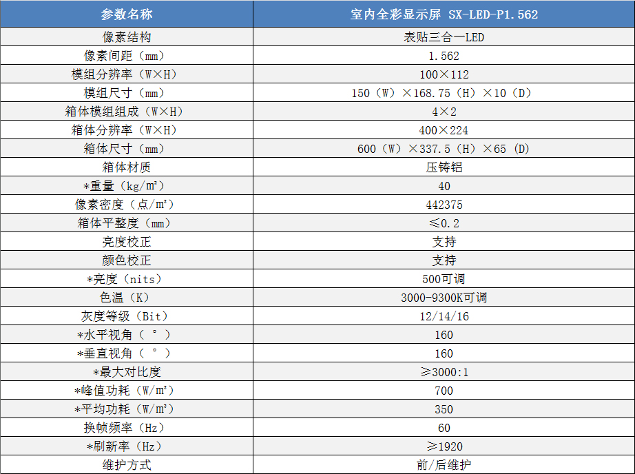 P1.562室內小間距高清全彩LED顯示屏技術參數(shù):