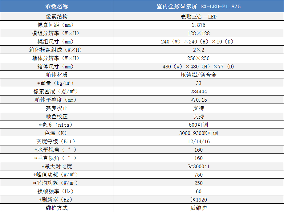 P1.875室內(nèi)小間距高清全彩LED顯示屏技術(shù)參數(shù):