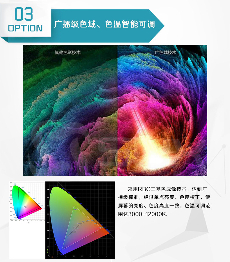 2、獨自開模,16:9的黃金比例,完美替代LCD、DLP拼接尺寸。
