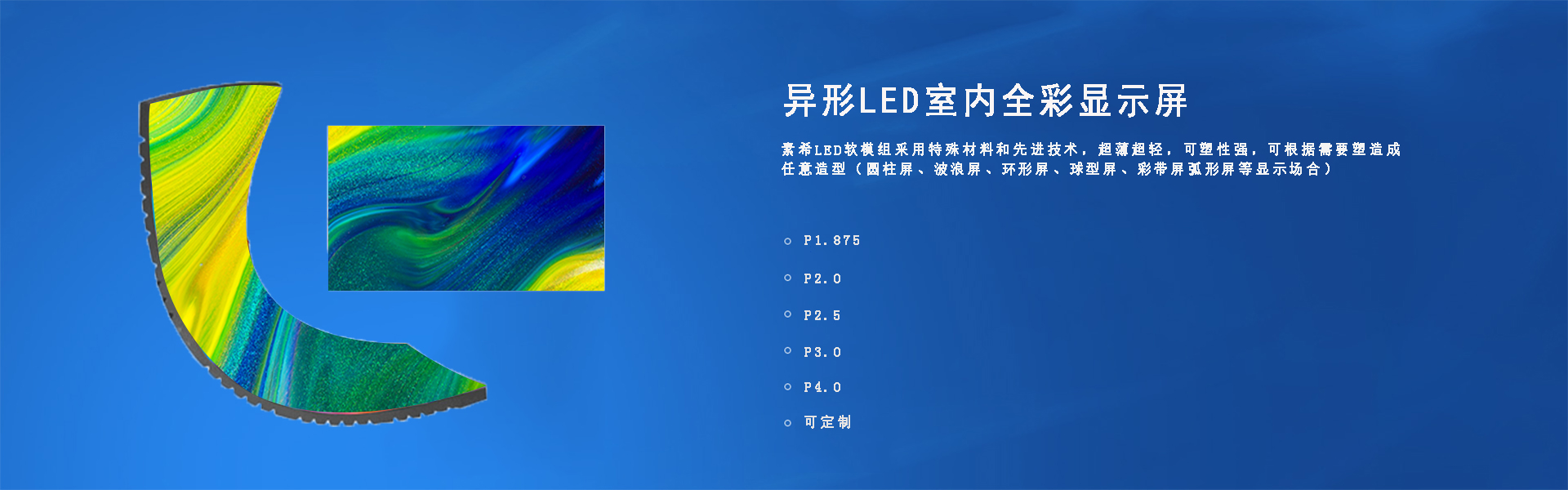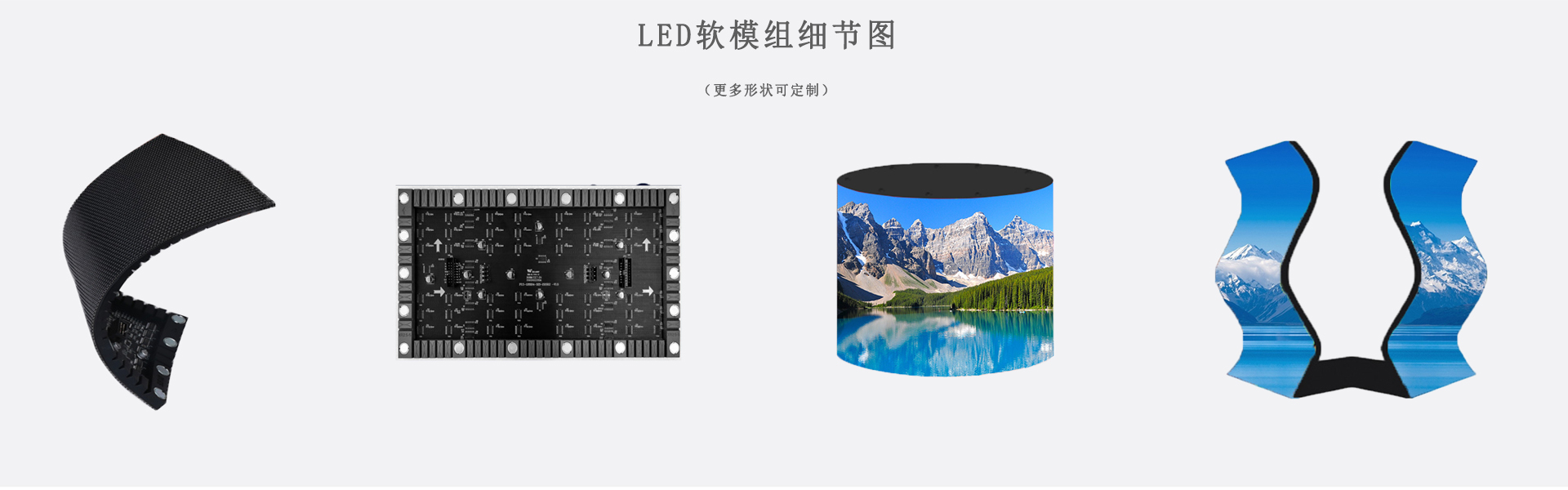 LED無縫拼接軟屏也稱作柔性LED顯示屏,采用特殊材料和先進技術,超薄超輕,單個模組的厚度僅8mm,不僅輕薄,可塑性強,該系列LED軟模組屬于異形LED大屏,采用可彎曲pcb和硅膠底殼套件,柔韌性強,可彎曲弧度最高120°,可根據需要塑造成任意造型(圓柱屏、波浪屏、環形屏、球型屏、彩帶屏弧形屏等顯示場合)